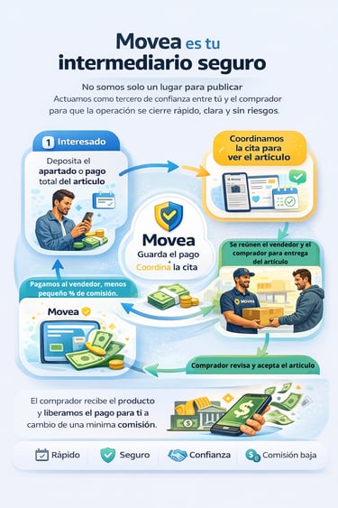 Movea es tu intermediario seguro en la compra y venta de cualquier artículo de Marketplace.
